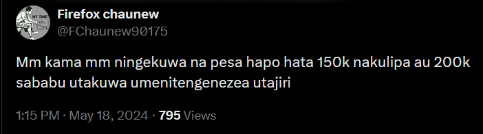 Lakini kwa sababu ya hali ya uchumi na mapenzi yangu kusaidia vijana, nikaamau kuchukua option ya 2.