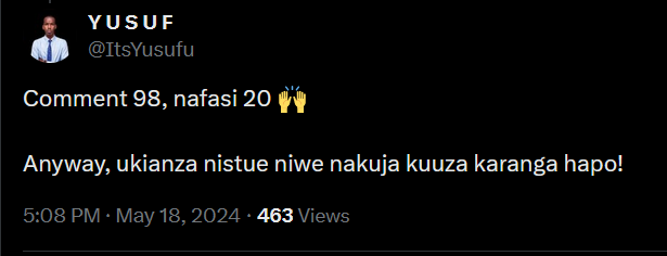Na bila shaka unakumbuka kale ka msemo kwetu,